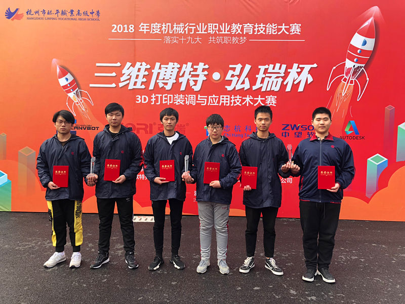 近日,由全国机械职业教育教学指导委员会、机械工业教育发展中心主办,北京三维博特科技有限公司等承办的2018年全国机械行业职业院校技能大赛“三维博特·弘瑞杯”3D打印装配与应用技术大赛在杭州临平职业高级中学圆满落下帷幕。本次大赛来自全国职业院校的99个代表队,198名参赛选手,我校三个代表队的俞建伟和周浩栋同学、徐俊毅和陈宝玉同学、边雨贤和沈枫涛同学,经过奋力拼搏,在270分钟内完成3D打印机的安装调试、打印机的排故、三维软件创新设计三项任务,最终荣获大赛3个一等奖的佳绩。