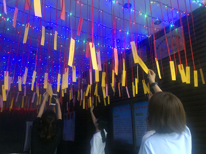 游园活动设置“猜灯谜”和“团体游戏”两个区域。灯谜区,一串串用红线串接的红色纸张,随风飘扬,引得同学们积极参与,热闹异常。同学们三五成群,高声辩论或独自斟酌。猜对的同学领取到了那展示自己智慧的奖品,现场一派欢乐景象。