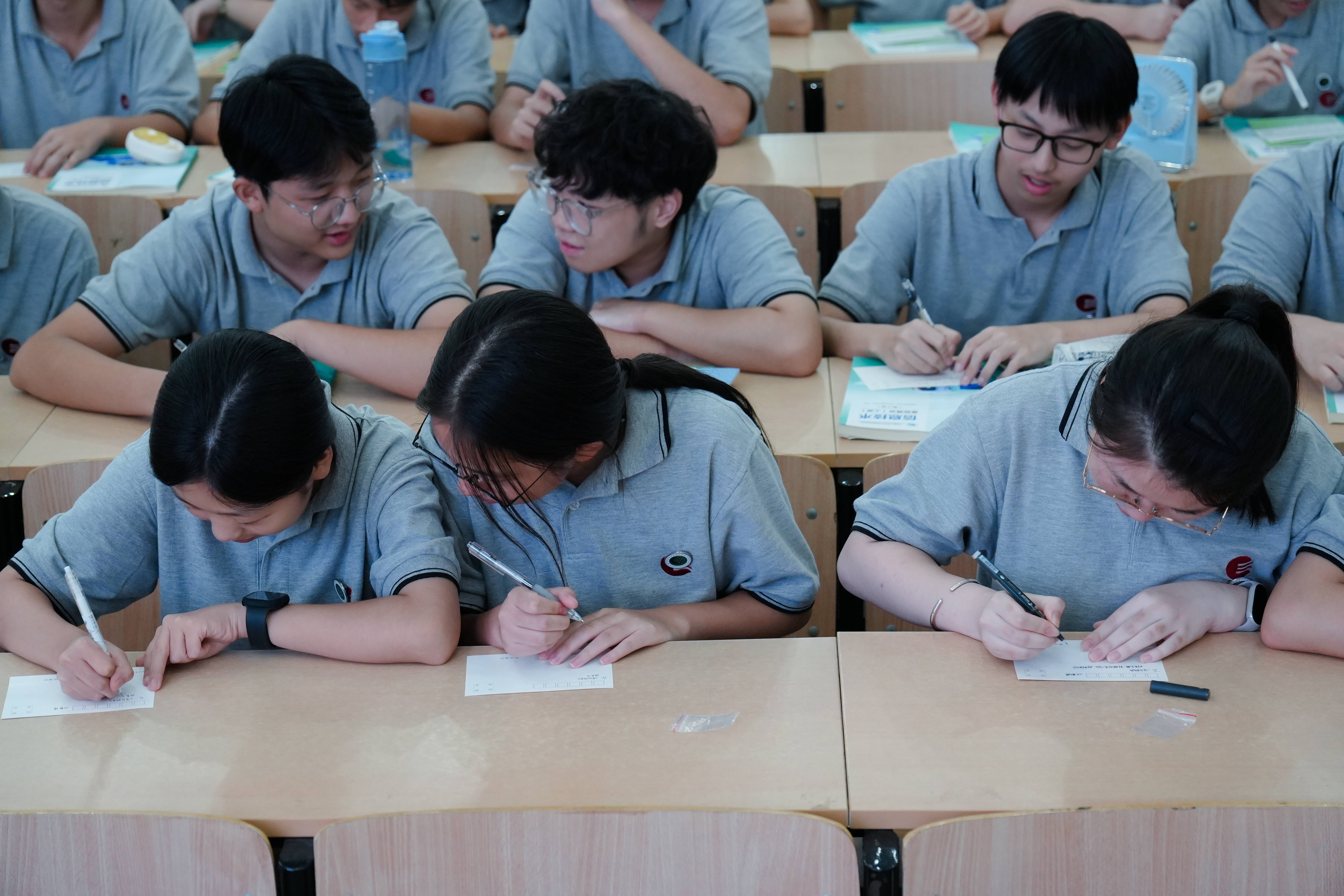 在主持人的庄严倡议下,全体新生郑重佩戴校徽。从此,一份责任与荣光便肩负在身。这枚校徽不仅是身份的象征,更是奋斗的见证,它将陪伴同学们脚踏实地、勇攀高峰。