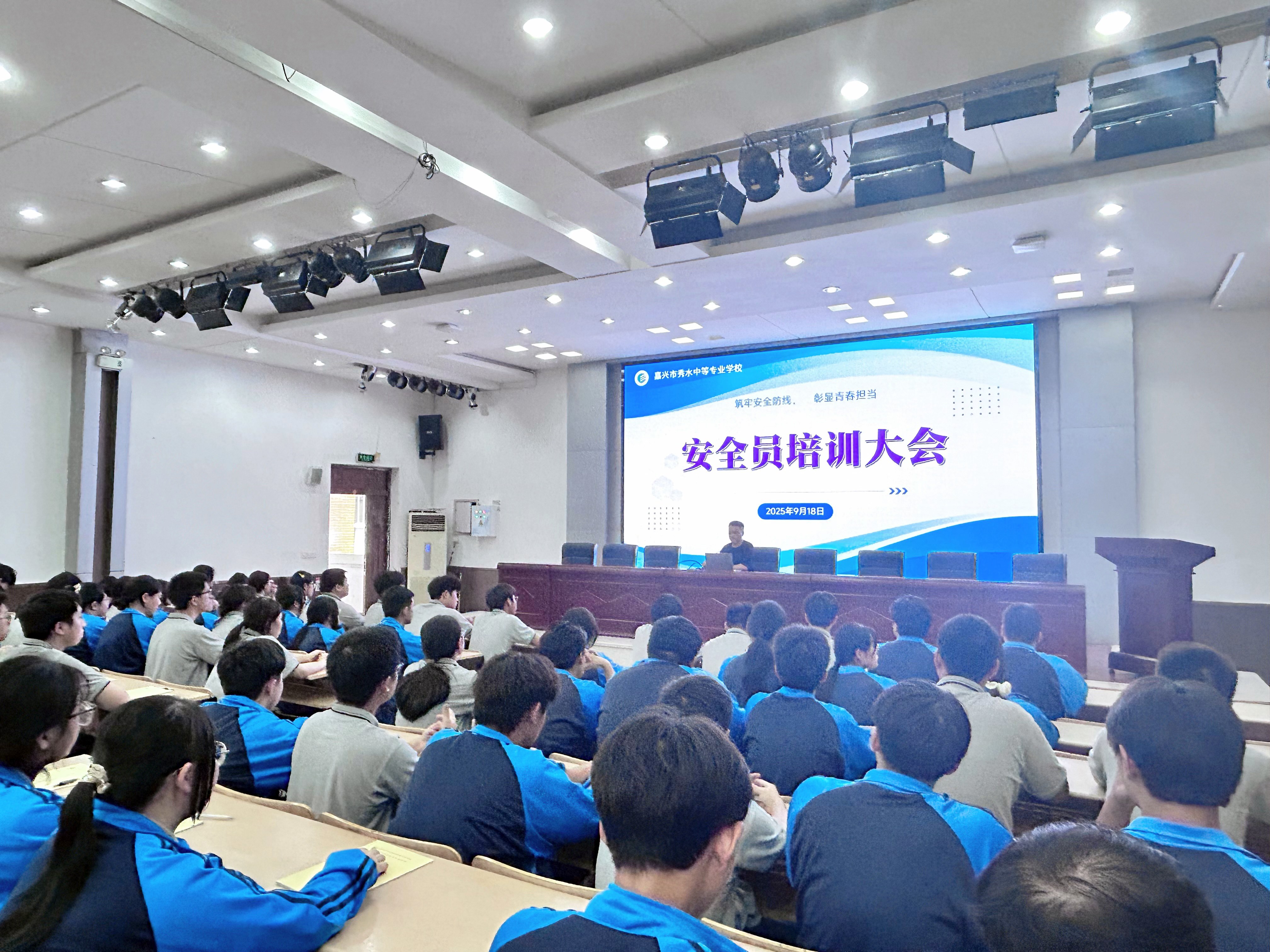 为进一步完善校园安全防控体系,提升学生安全员的履职能力,9月18日下午,秀水中专隆重召开全体安全员培训大会。会议由安全处主任朱小虎主讲,各系负责德育工作副主任出席,全校150余名安全员参加。