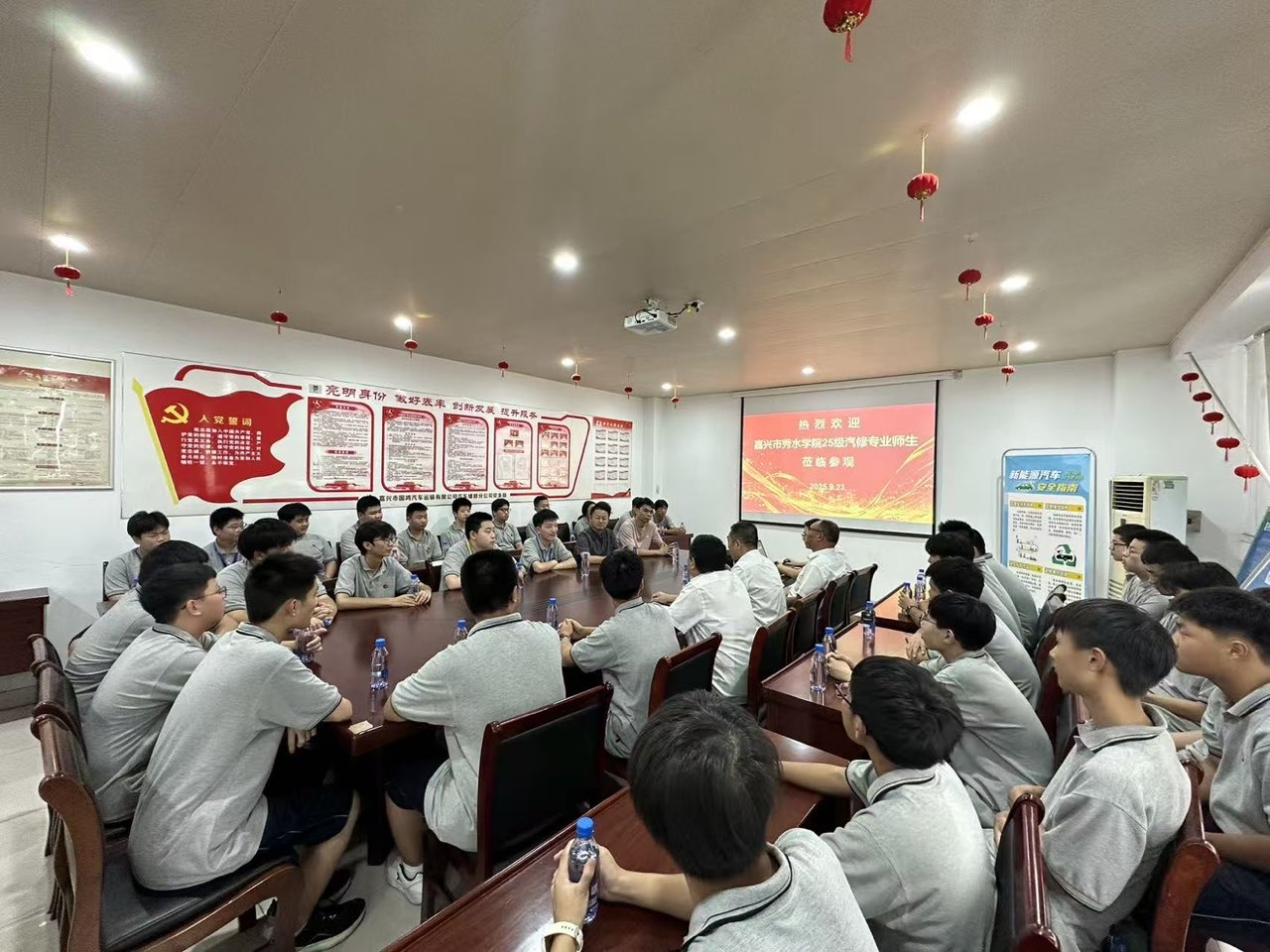 国鸿汽车维修分公司为新生量身定制体验活动:先通过讲座向新生介绍公司概况、行业前景与岗位设置;随后带领新生参观车间,让新生一边实地观察先进维修设备,一边听技术人员解读设备原理与维修流程,直观认识未来工作环境与核心工具。