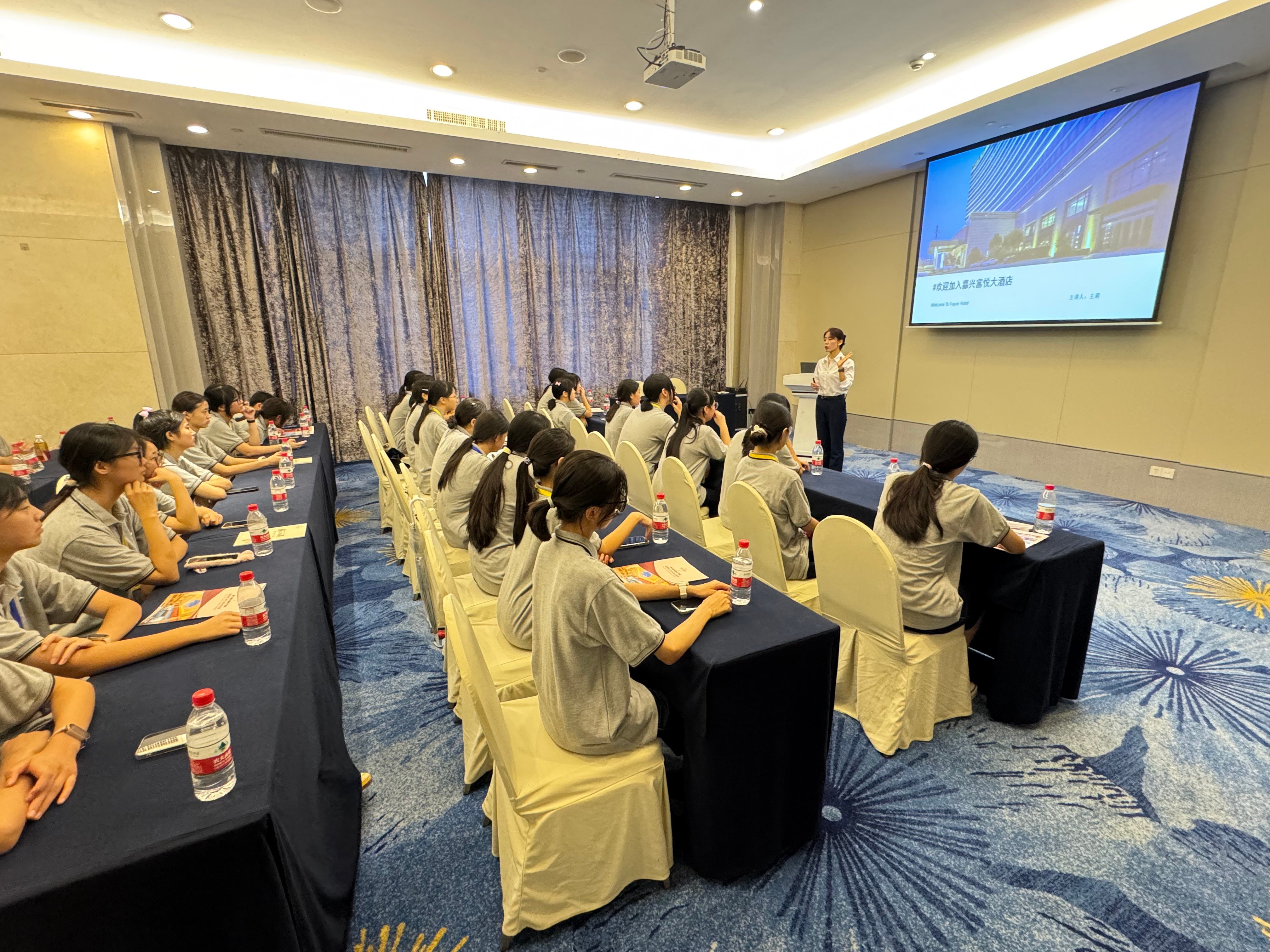 嘉兴富悦大酒店经理王莉亲自引导师生参观餐饮部、客房部、宴会厅等核心部门。通过实地观摩,同学们近距离感受了高端酒店现代化管理模式,清晰了解了各部门职能分工和标准化服务流程,为后续学习夯实了基础。