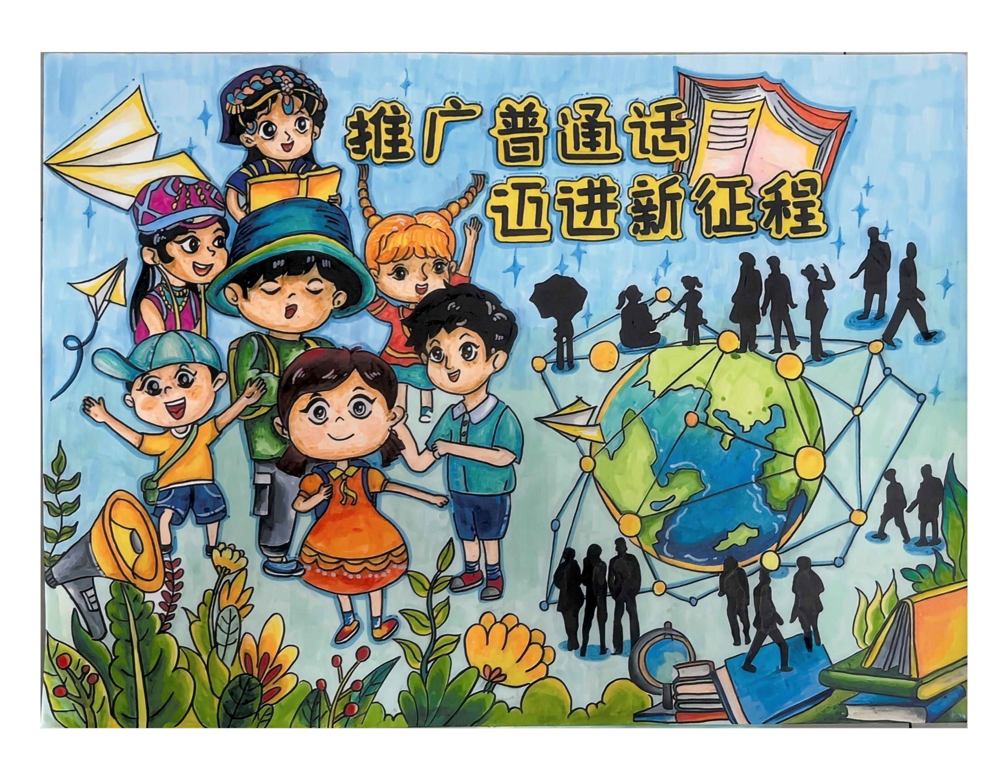 活动得到了师生们的热烈响应。同学们紧扣推普主题,结合自身对国家通用语言文字重要性的理解,充分发挥想象力与创造力,将文字的深邃内涵与艺术的审美意趣巧妙融合,编织出一幅幅绚丽多彩的画卷。有的同学以“普通话是沟通的桥梁,民族魂是团结的根基”为核心,用简洁有力的标语搭配象征多民族携手共进、和睦相处的生动插画,传递语言互通、民族同心的美好理念;有的同学聚焦“规范汉字书写”,以或刚劲有力,或飘逸灵动的书法呈现经典名句,展现出中华优秀传统文化的独特魅力;还有的同学借助漫画这一艺术形式,让“铸牢中华民族共同体意识”这一严肃而庄重的主题变得鲜活生动、深入人心。