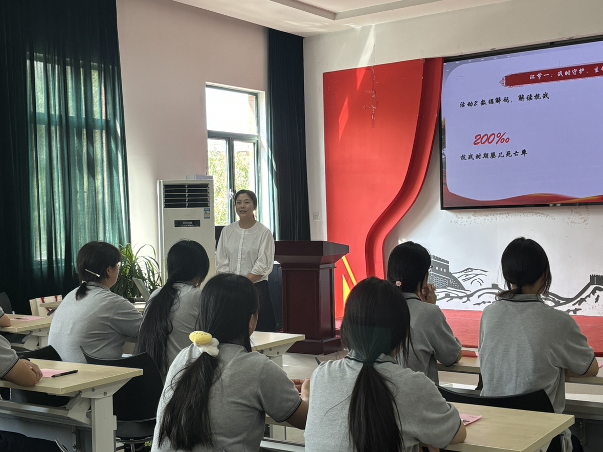 本月的主题班会观摩课由人文健康系吴王娟老师带来。吴老师以“知情意行”为清晰主线,为母婴照护专业学生量身打造了《铭抗战精神,扬使命风帆》班会课。班会从知晓抗战历史数据与婴儿死亡率切入,通过情感浸润的战时书信和“猫妈妈”故事,激发学生对生命的敬畏;进而借助AI对话等环节引导意志思辨,将抗战精神与职业使命相连;最终落脚于行动,以“三个一”计划和庄严宣誓,引导学生将感悟转化为精进技能、守护新生的具体承诺,实现了历史教育与专业伦理培养的深度融合。