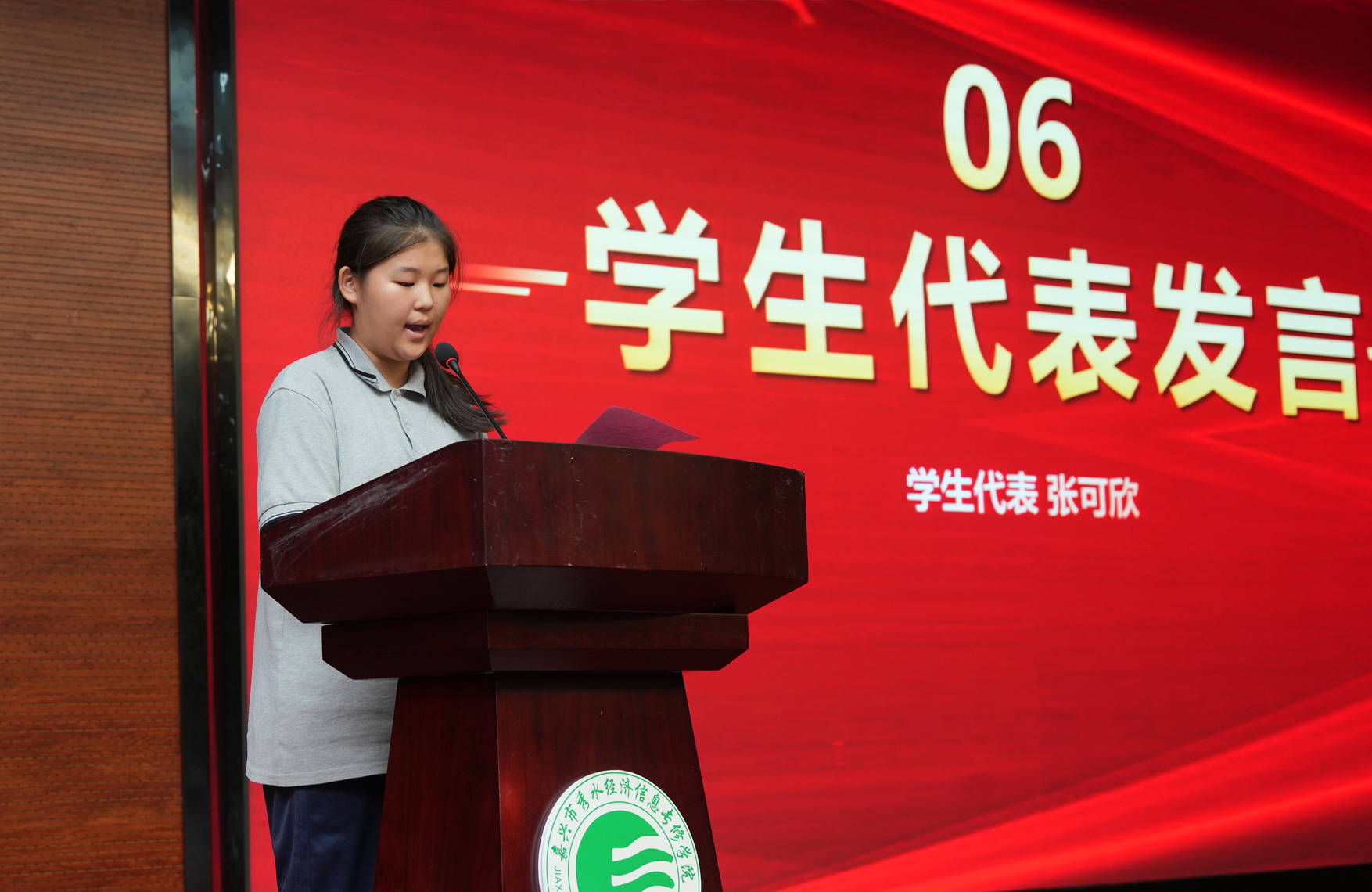 23 财会 2 班张可欣则激励所有学生:“成功不会眷顾懒惰者,只会垂青拼搏者!”随后,她分享了备考策略——锚定目标,以清晰方向指引前行;高效复习,以精准策略提升实效;心态调适,以积极状态应对挑战,祝愿大家都能超常发挥,取得优异成绩!