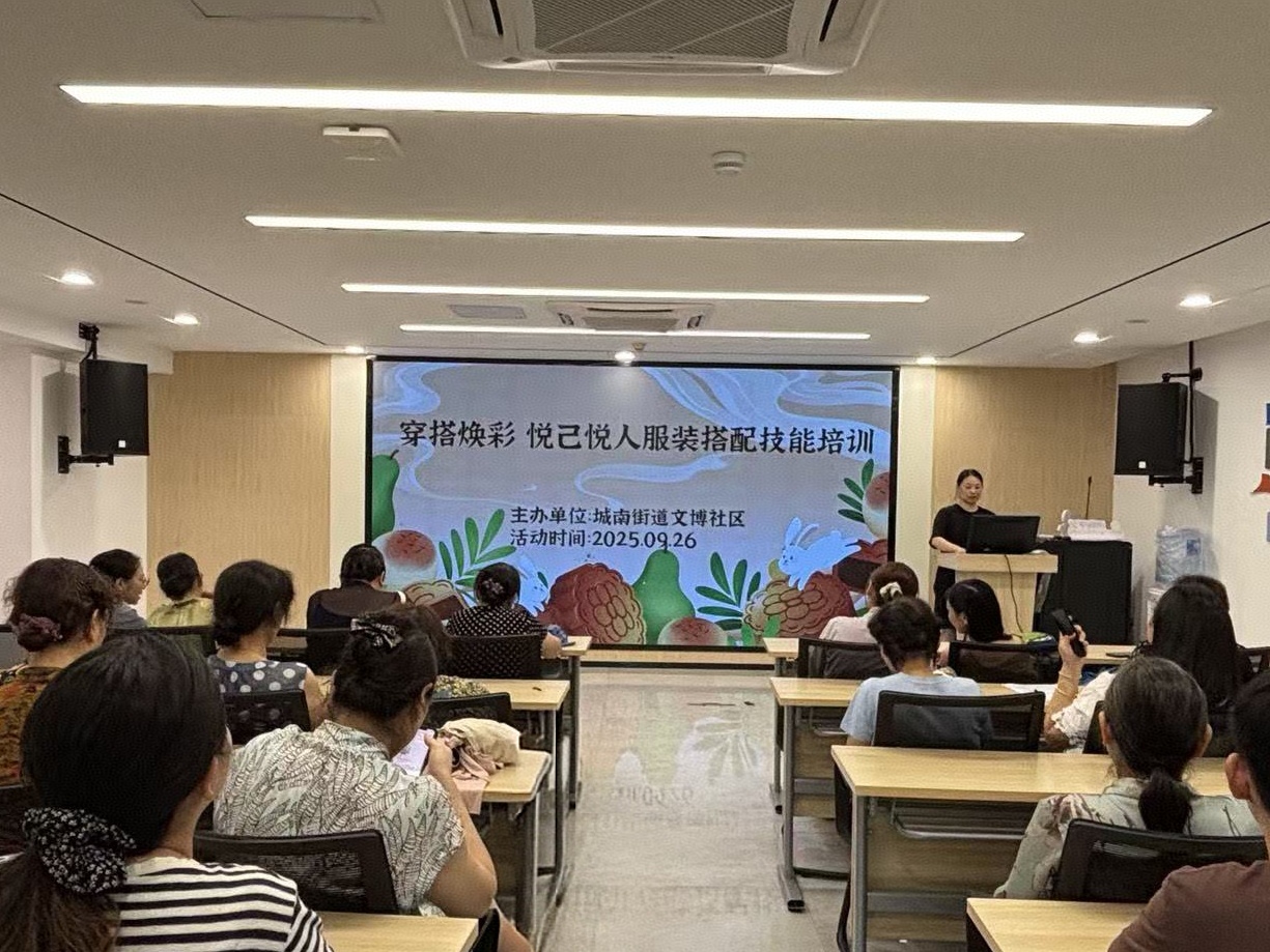 在文博社区活动室里,服装设计教师金春月为居民讲解色彩搭配与着装技巧。她通过现场穿搭改造和互动问答,帮助居民解决“穿衣难题”。社区干部反馈,课后居民参与文化活动的积极性显著提高,邻里关系也因“美”而更加和谐。
