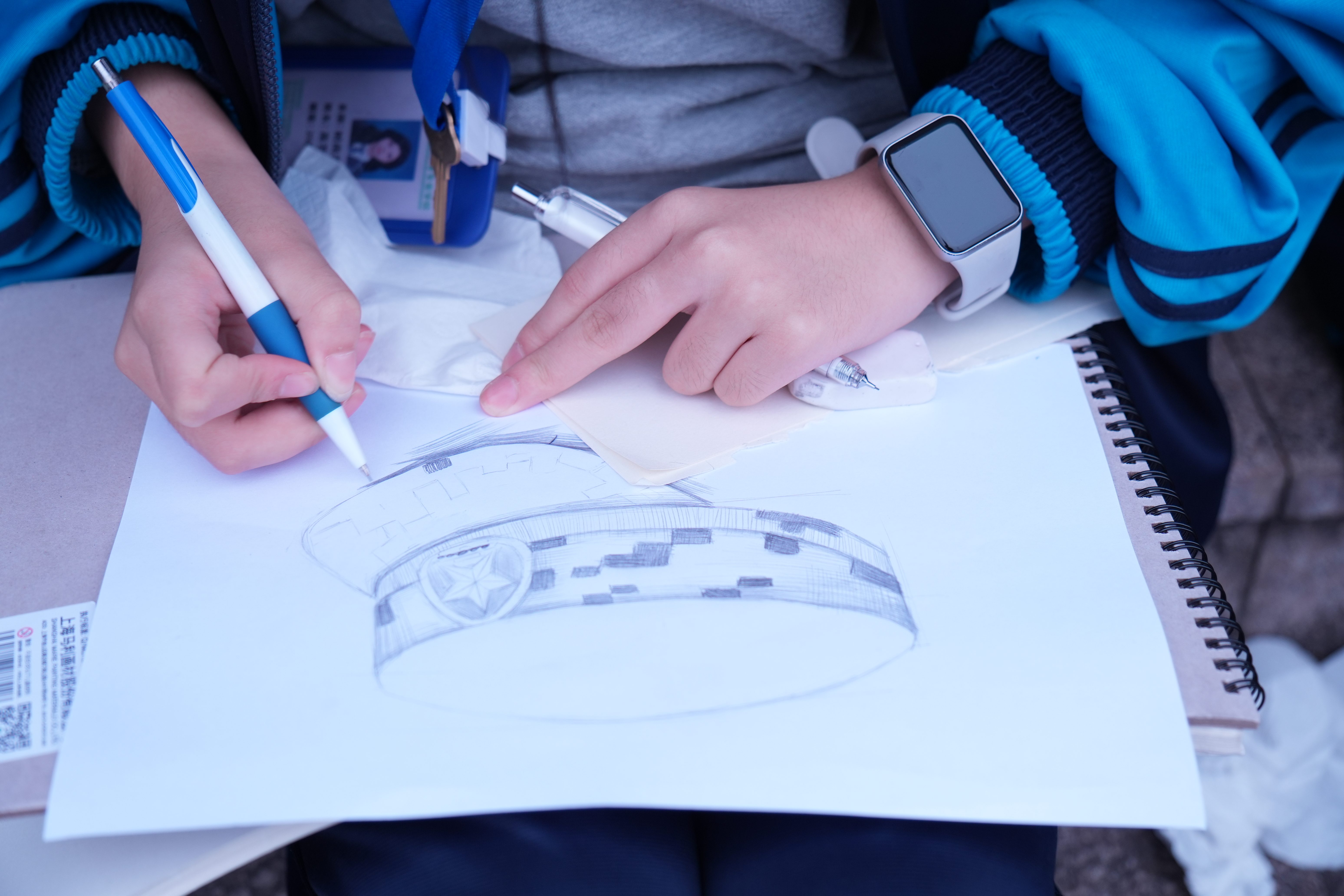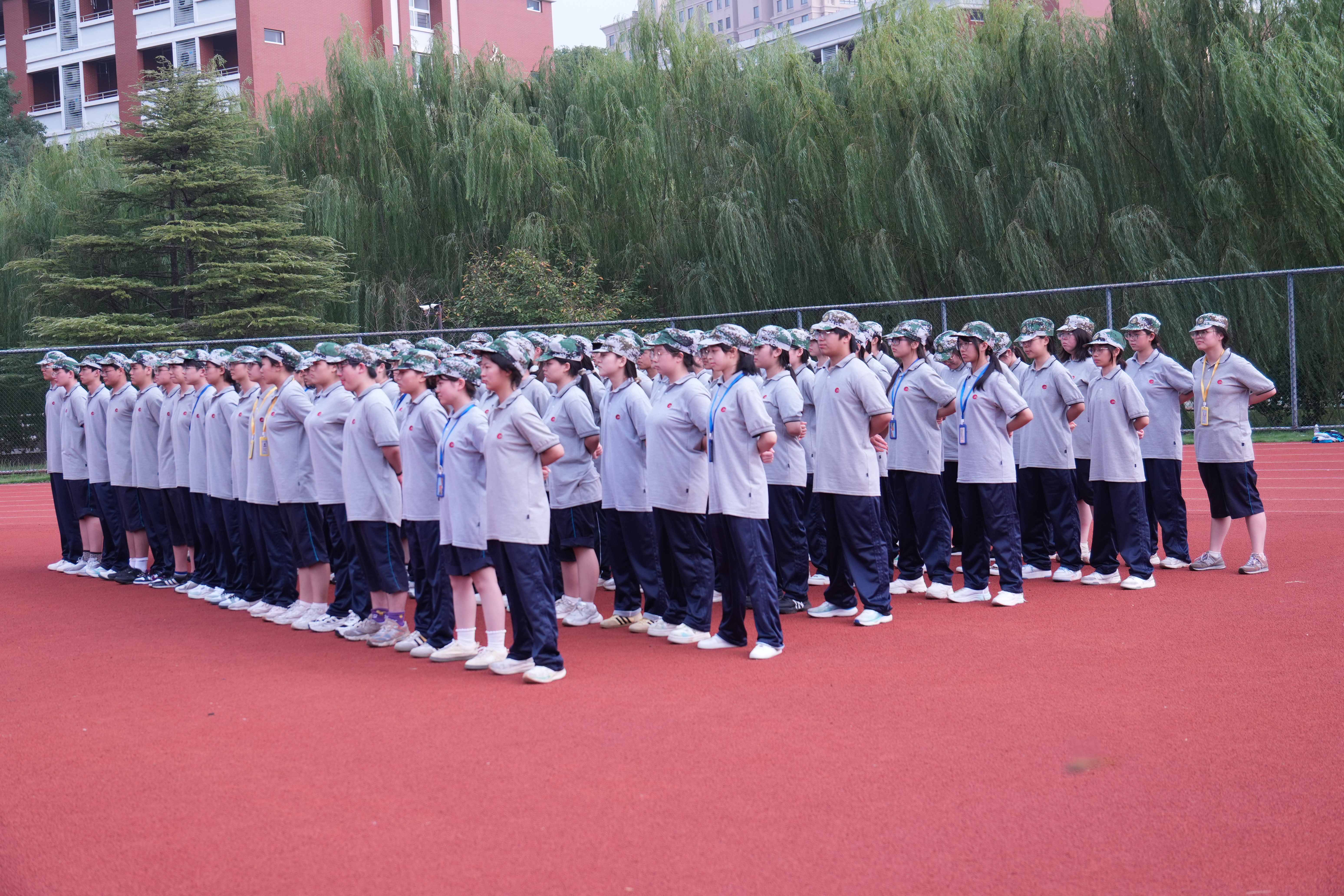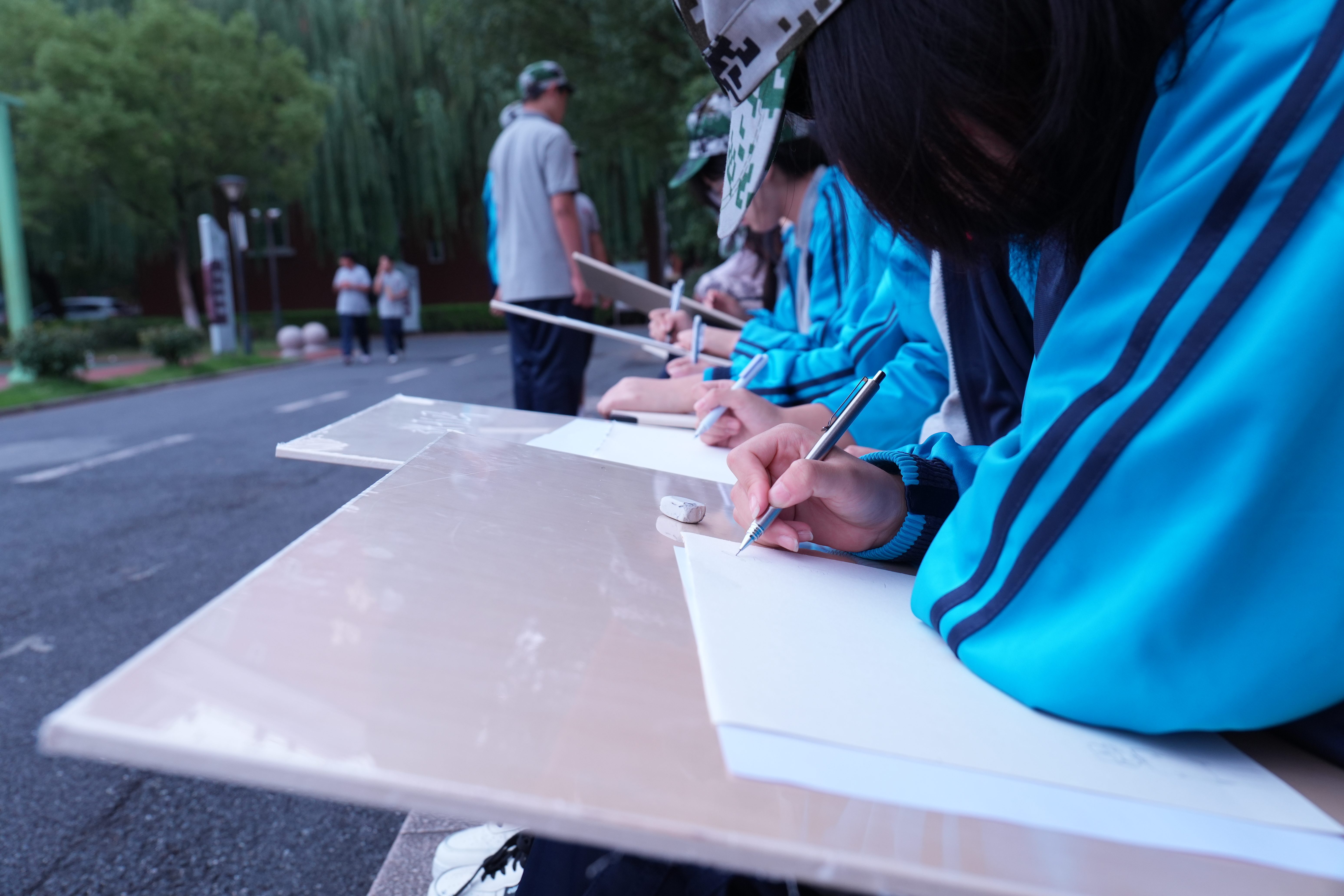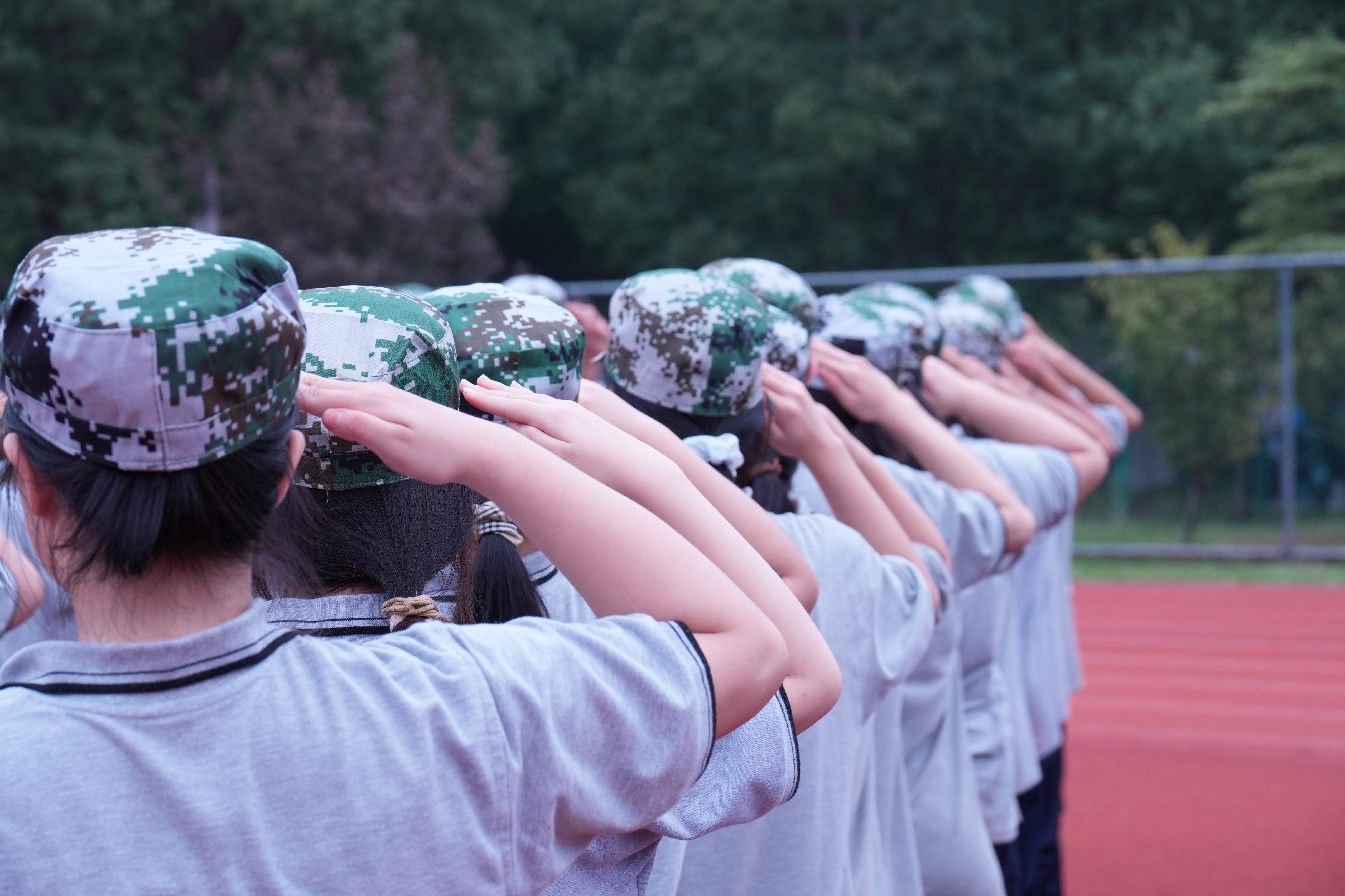 惯执画笔的双手紧贴裤缝,时尚学子迎来国防第一课。