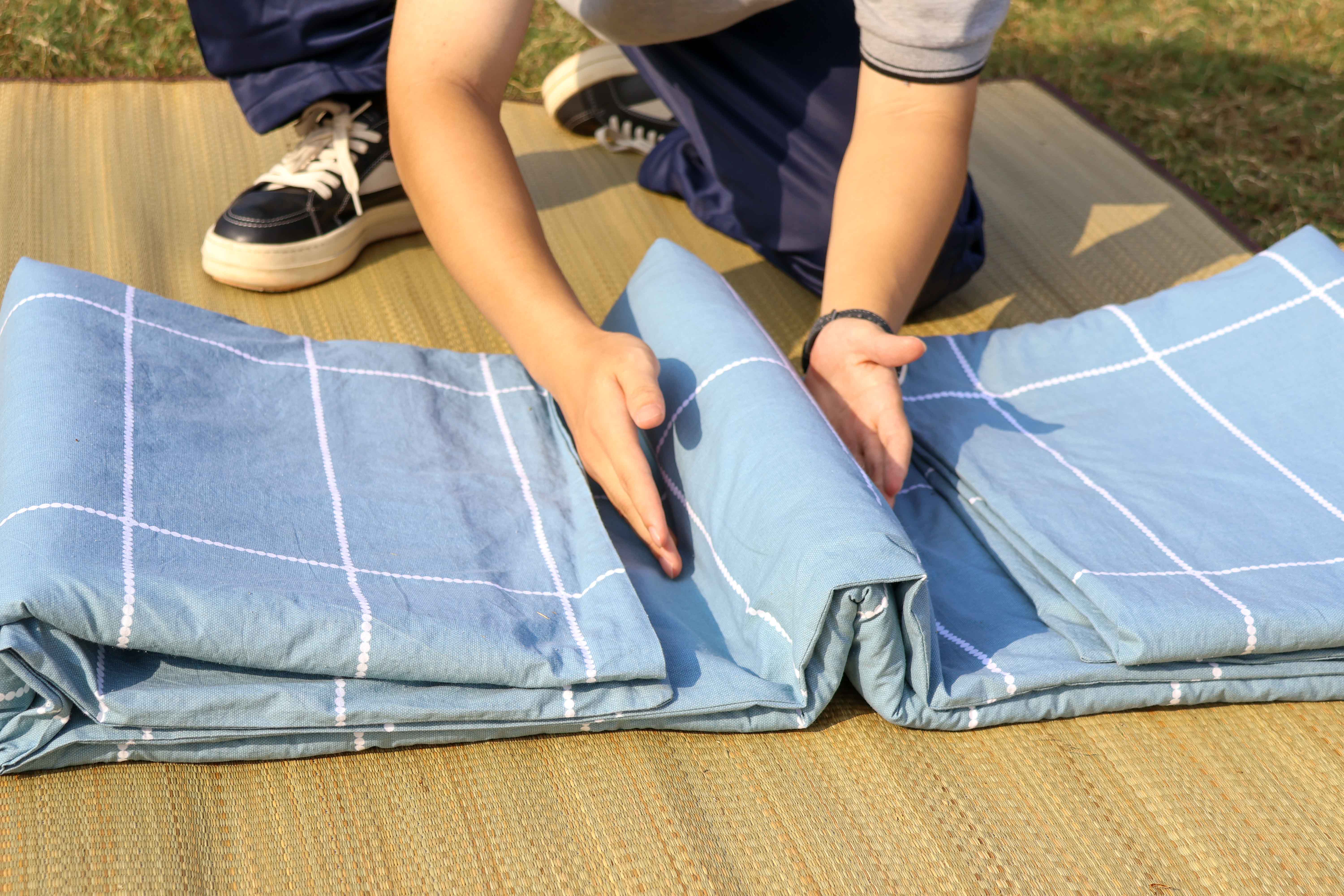 随着哨声响起,所有选手迅速进入状态,将全部心神投入到手中的“作品”创作中。他们俯身娴熟从容地压被、折边、抠角,让原本蓬松的棉被逐渐褪去臃肿,显露出坚挺的轮廓,折叠出一道独特的风景线。整个赛场静默无声,却涌动着一股名为“认真”的力量。那份沉浸其中的专注,那份对完美的执着,正是对“一丝不苟”的最佳诠释。