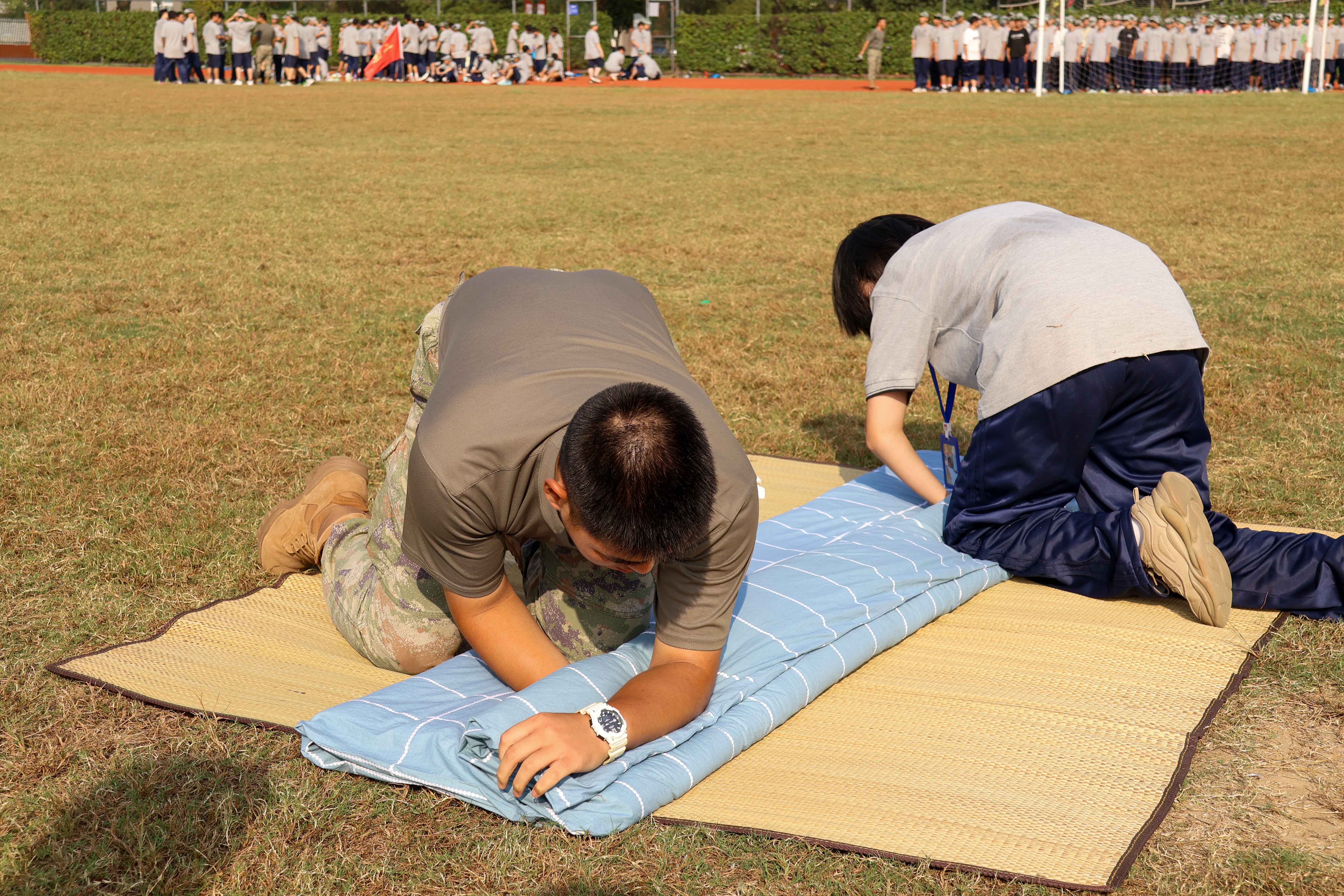 “预备——开始!”口令刚落,屏气凝神的寂静骤然降临,唯有手掌与布料摩擦的“唰唰”声此起彼伏。秀水中专操场上,一场关乎作风与耐心的特殊“较量”——2025级新生国防教育周内务“叠被子”大赛正紧张进行。
