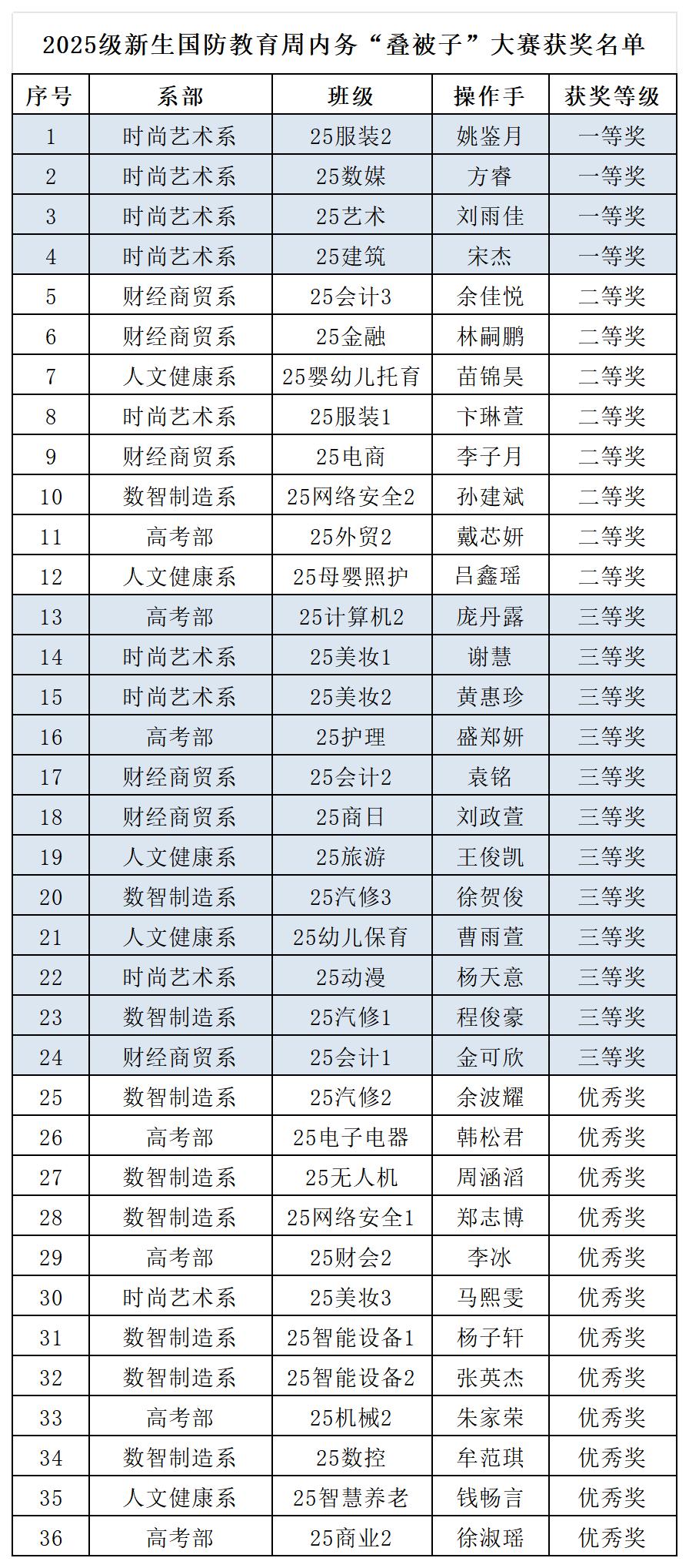 一条平凡的被子,叠出的是规矩,塑造的是品格;一项简单的比赛,考验的是技艺,锤炼的是精神。这方寸之间的学问,犹如一把精巧而深刻的刻刀,在每位新生的成长年轮上,刻下了“严谨”与“坚持”的印记,让国防教育周的精神内涵变得可触、可感,并终将可期。