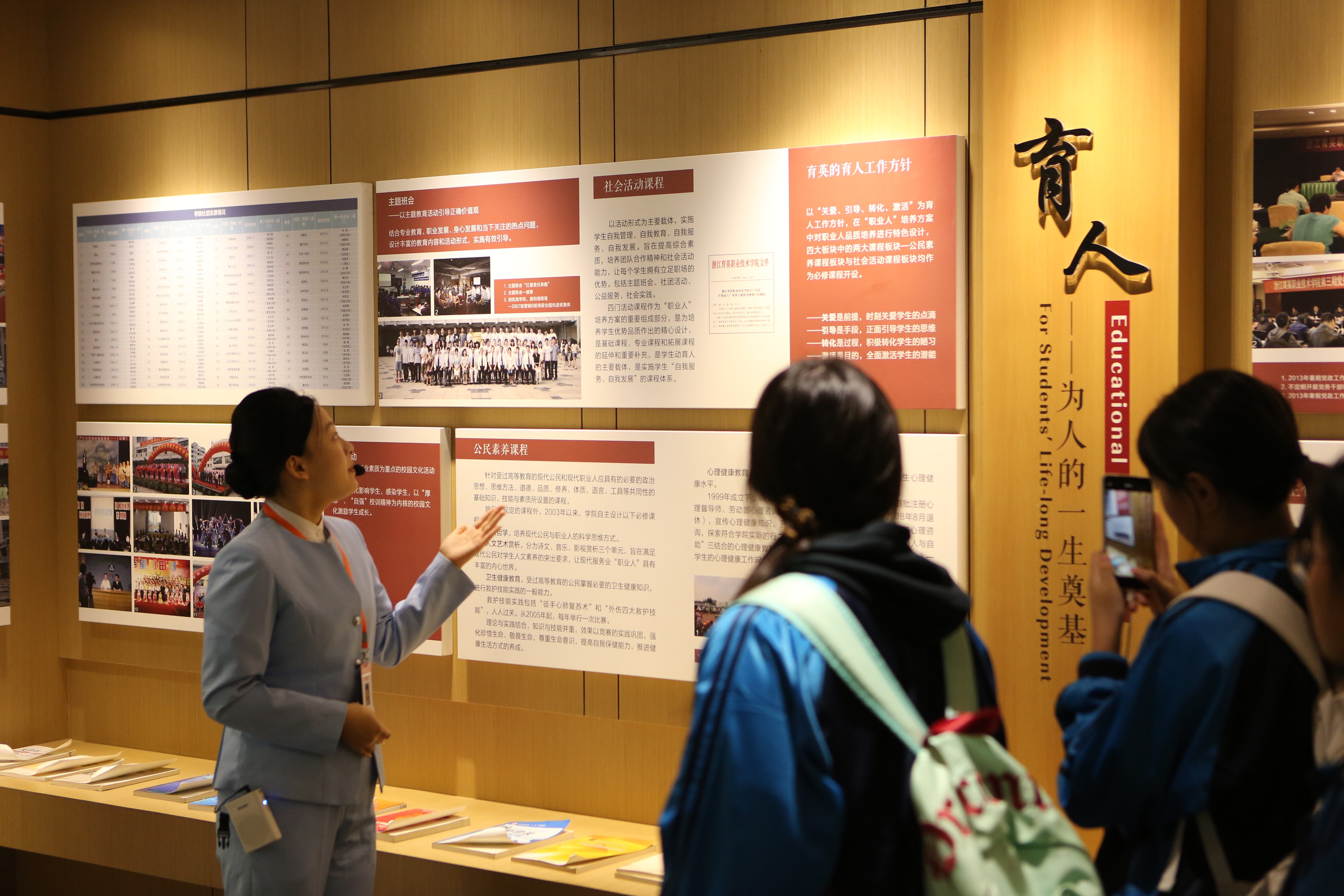 在浙江育英职业技术学院领导的热情接待与陪同下,秀水中专师生一行参观了学院校史馆,并聆听了一堂生动的“思政课”。当看到习近平总书记视察学院的珍贵影像时,师生们深切感受到党和国家对职业教育的高度重视与殷切期望,进一步坚定了投身专业学习的信心和矢志技能报国的初心。