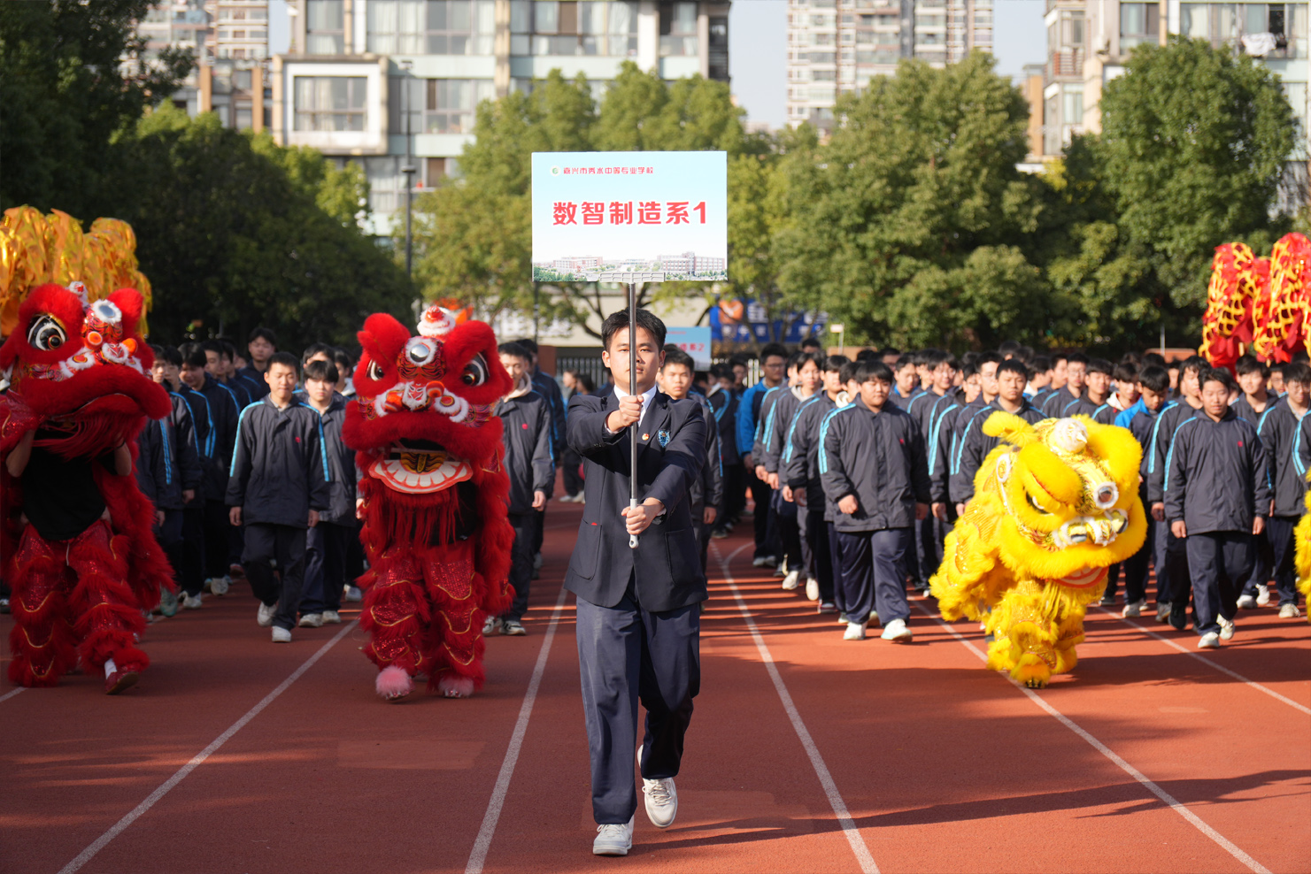 伴随着《运动员进行曲》的雄壮旋律,入场式正式开始。各系部方阵迈着整齐的步伐,依次走过主席台:国旗队身姿挺拔、步履铿锵,鲜红的国旗在阳光下猎猎作响,映照出秀水青年眼中的赤诚;校旗队昂首阔步、精神抖擞,校旗舒展间彰显着秀水昂扬的风貌;鲜花队笑容明媚,在花团锦簇中传递蓬勃的朝气。镜头扫过之处,是一张张洋溢着笑容的脸庞,是一个个充满创意的方阵,青春的能量在运动场上尽情释放。