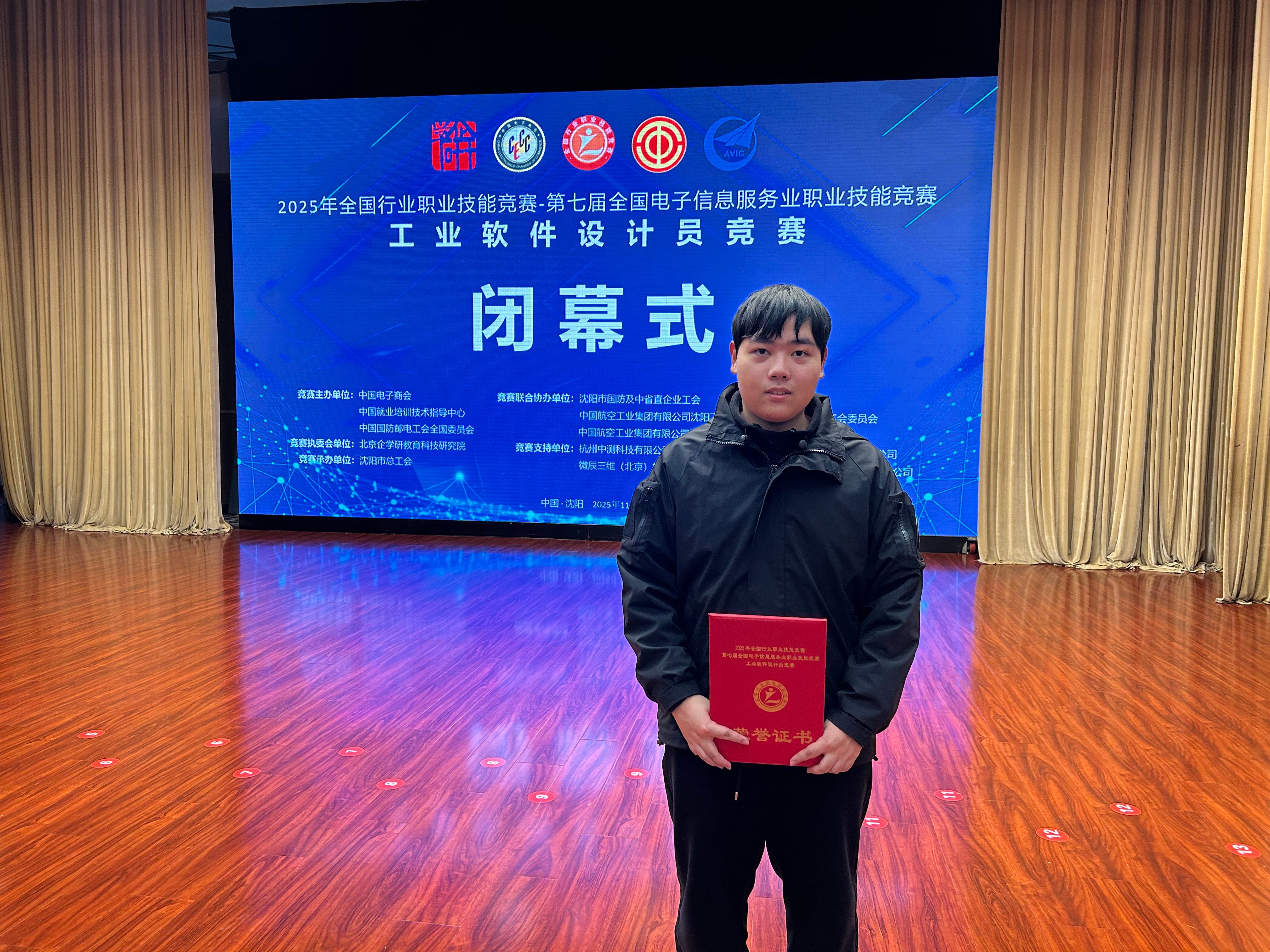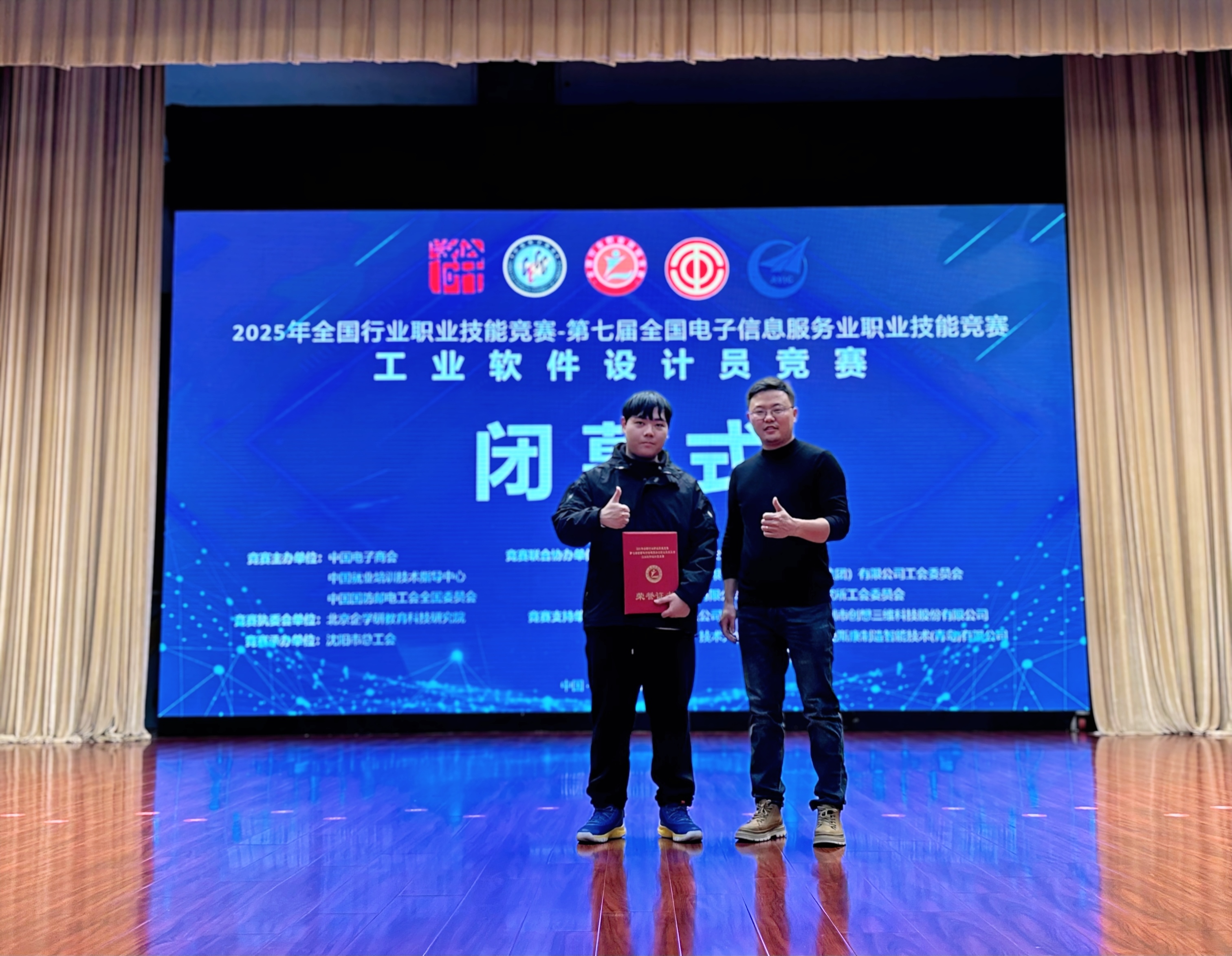 2025年全国行业职业技能竞赛——第七届全国电子信息服务业职业技能竞赛“工业软件设计员”赛项全国总决赛在辽宁沈阳圆满落幕。数智制造系学生朱喆陆宇(指导教师:王炳乾、戚加敏)荣获全国二等奖。