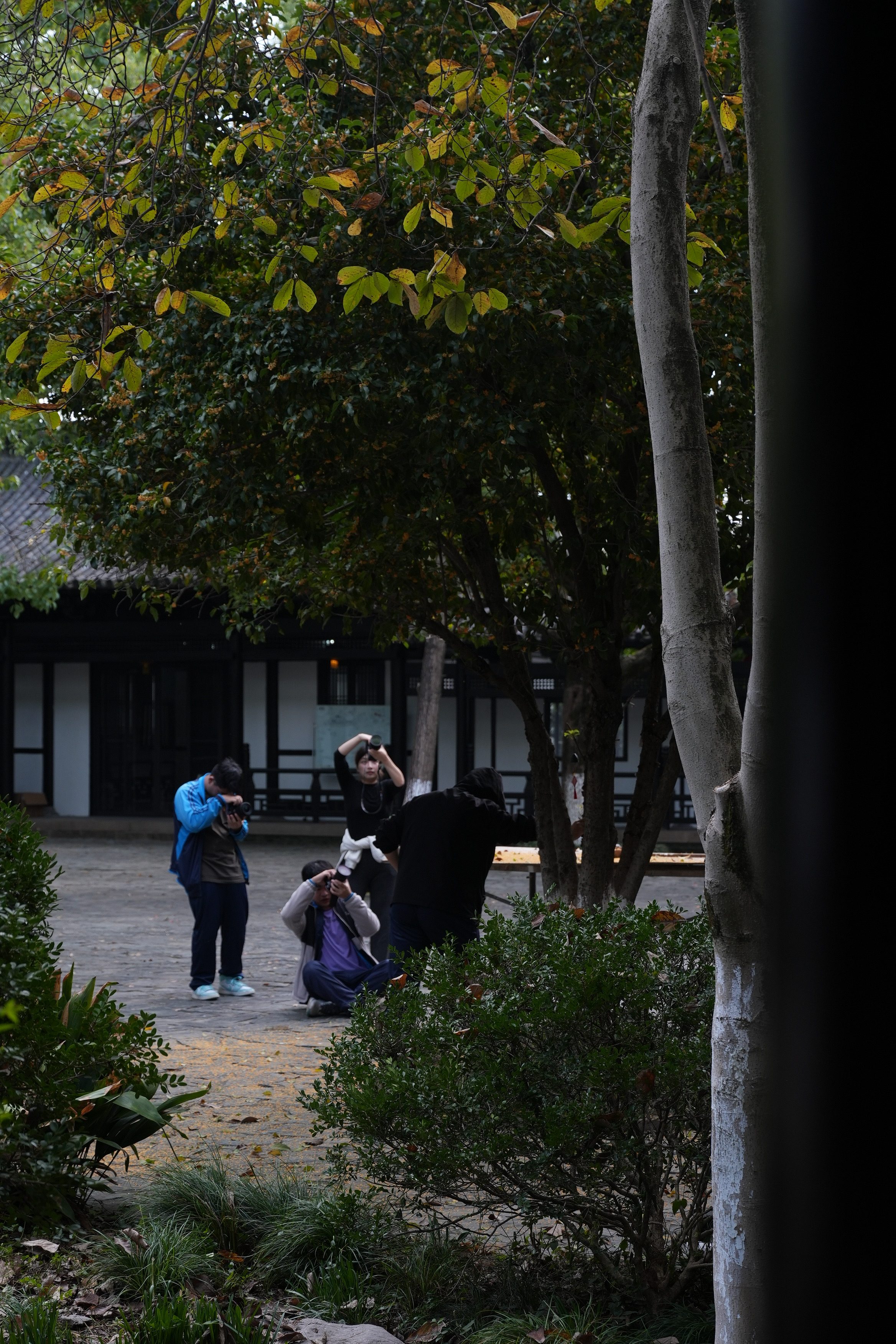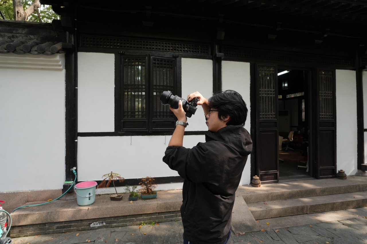 拍摄阶段,同学们手持设备捕捉园区细节——晨光露珠、古朴飞檐、水面倒影、摇曳柳枝,记录每一处可能成为亮点的自然与人文元素。