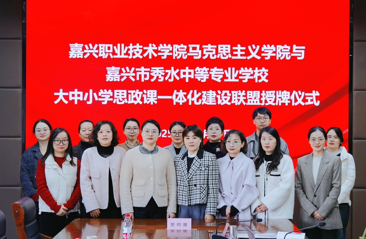 为深入贯彻落实立德树人根本任务,扎实推进大中小学思政课一体化建设,12月9日上午,嘉兴市秀水中等专业学校与嘉兴职业技术学院马克思主义学院联合举办专题研讨活动,共谋协同发展新篇章。嘉兴职业技术学院马克思主义学院院长沈丹、副院长唐黎,秀水中专校长陆雅平、副校长丁婷婷及相关骨干教师参加活动。