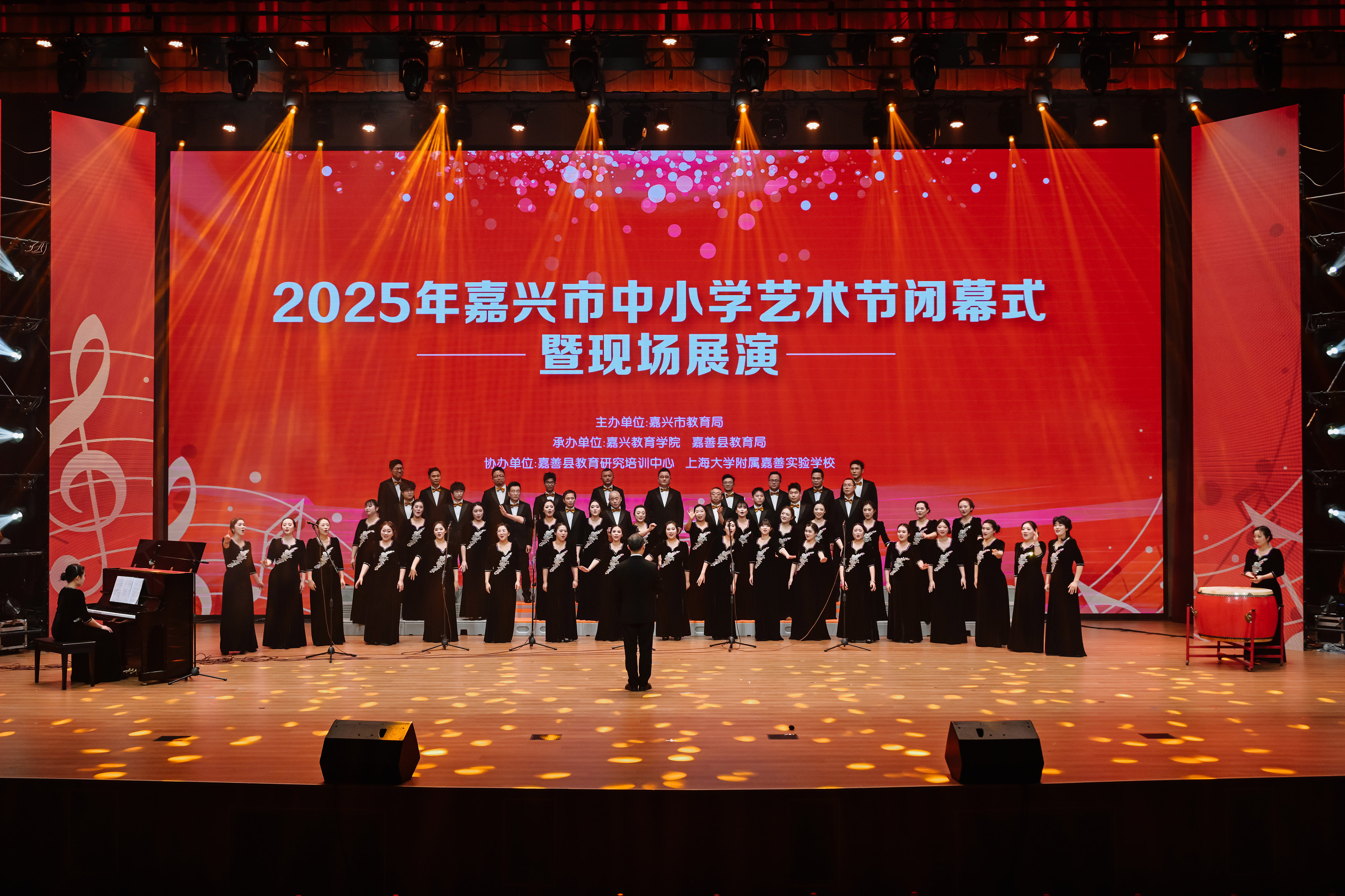 与此同时,秀水中专教师徐劼、雷静静、刘赢作为嘉兴市教师合唱团成员,也在此次展演中一展歌喉。他们褪去课堂上的严谨,以深情而专业的演唱,为整场演出注入了一份温暖而厚重的力量,也诠释了教育工作者在专业之外的诗意情怀。