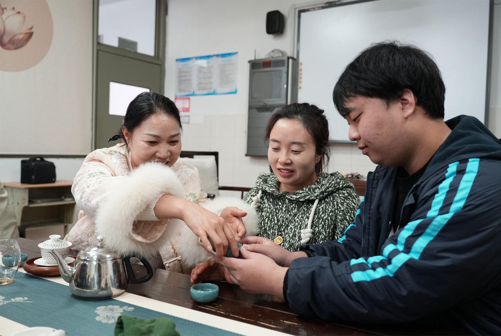 活动中,各专业学生展现出扎实的专业素养:母婴照护专业学生示范婴儿抚触技巧,智慧健康养老服务专业学生讲解老年护理要点,旅游服务与管理专业的学生呈现茶艺文化之美,幼儿保育专业学生则通过衍纸手工和键盘联弹,在艺术互动中传递温情。学生成为真正的“榜样”,在传授中巩固技能,实现价值;家长在参与中见证成长,收获自豪。