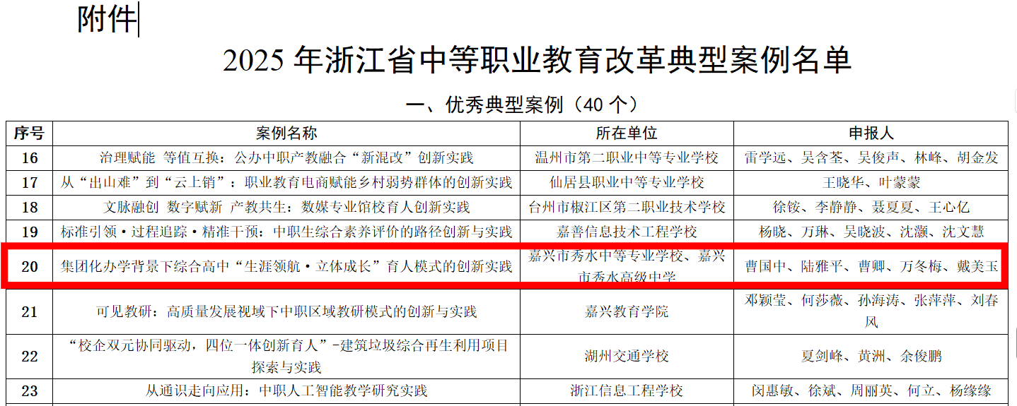 职普融通是国家加快构建现代职业教育体系、深化职普融通的战略方向之一。秀水中专作为嘉兴市本级率先开展此项改革的学校,自2023年启动以来,始终秉持公平、公正、公开的原则,通过严谨规范的选拔机制,为每一名努力向学的学子搭建起跨越发展的平台,相关实践与研究成果先后获评“嘉兴市中等职业教育改革优秀典型案例”与“浙江省中等职业教育改革优秀典型案例”。